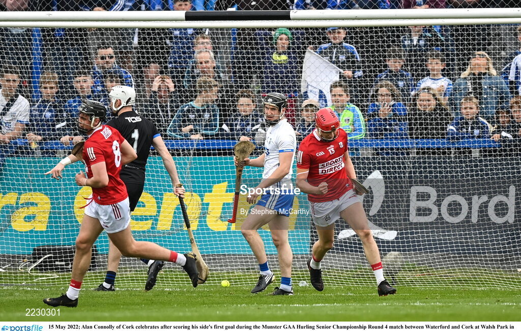 15 May 2022; Alan Connolly of Cork celebrates after scoring his side's first goal during the Munster GAA Hurling Senior Championship Round 4 match between Waterford and Cork at Walsh Park in Waterford. Photo by Stephen McCarthy/Sportsfile