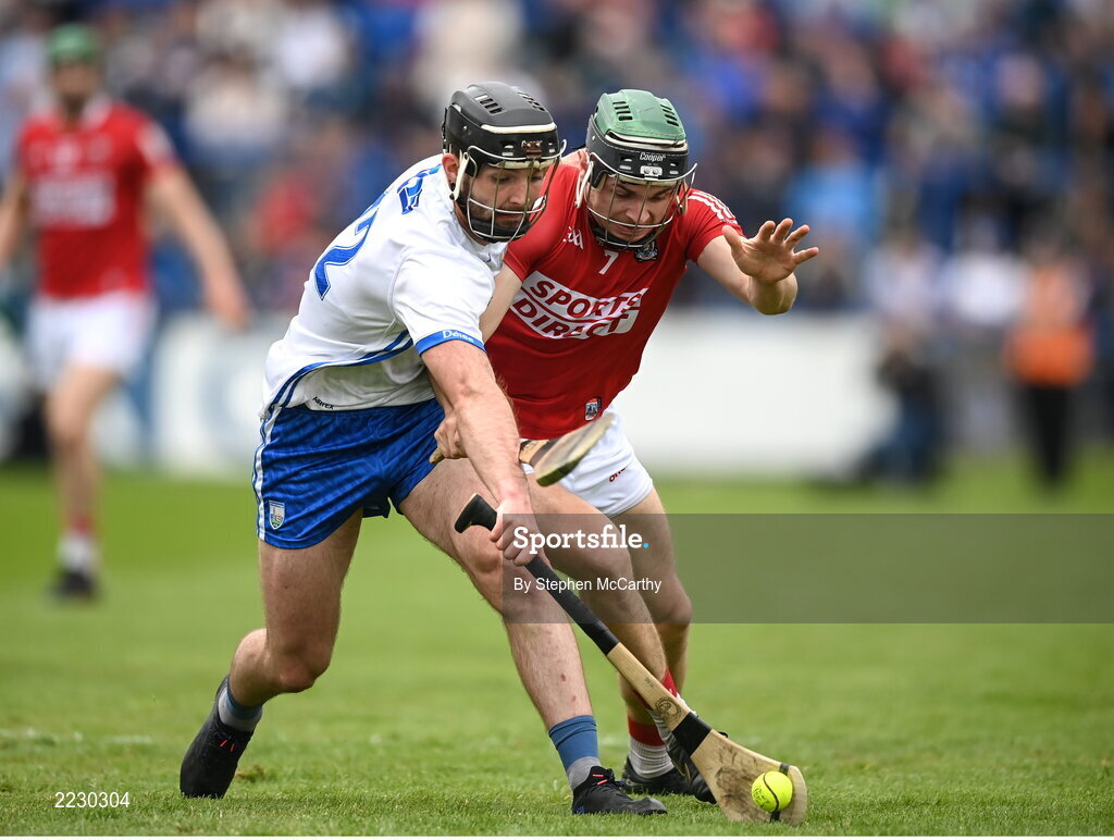 15 May 2022; Patrick Curran of Waterford in action against Mark Coleman of Cork during the Munster GAA Hurling Senior Championship Round 4 match between Waterford and Cork at Walsh Park in Waterford. Photo by Stephen McCarthy/Sportsfile