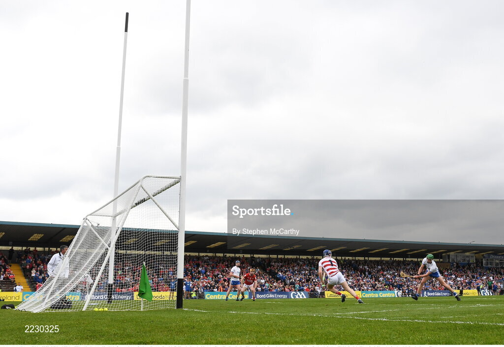 15 May 2022; Michael Kiely of Waterford scores his side's first goal past Cork goalkeeper Patrick Collins during the Munster GAA Hurling Senior Championship Round 4 match between Waterford and Cork at Walsh Park in Waterford. Photo by Stephen McCarthy/Sportsfile