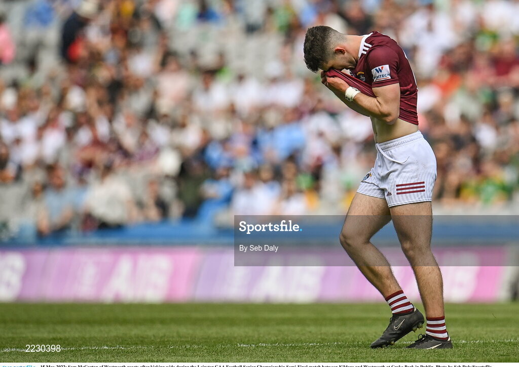 15 May 2022; Sam McCartan of Westmeath reacts after kicking wide during the Leinster GAA Football Senior Championship Semi-Final match between Kildare and Westmeath at Croke Park in Dublin. Photo by Seb Daly/Sportsfile