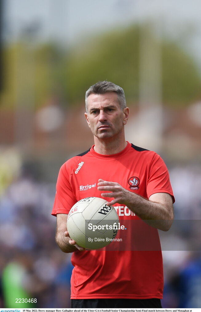 15 May 2022; Derry manager Rory Gallagher ahead of the Ulster GAA Football Senior Championship Semi-Final match between Derry and Monaghan at Athletic Grounds in Armagh. Photo by Daire Brennan/Sportsfile