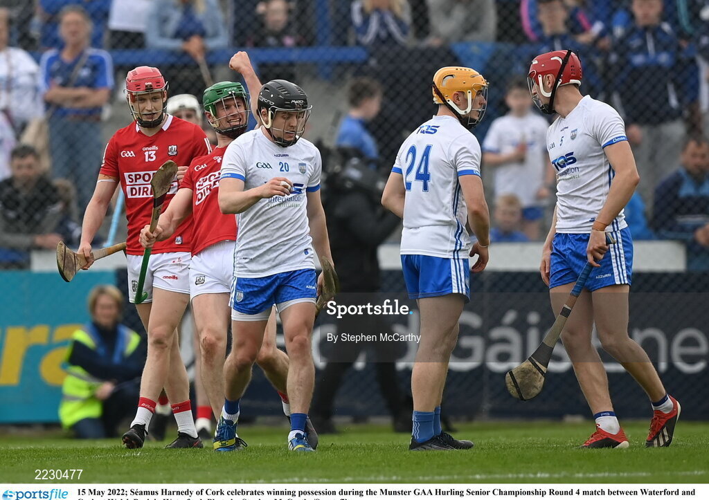 15 May 2022; Séamus Harnedy of Cork celebrates winning possession during the Munster GAA Hurling Senior Championship Round 4 match between Waterford and Cork at Walsh Park in Waterford. Photo by Stephen McCarthy/Sportsfile