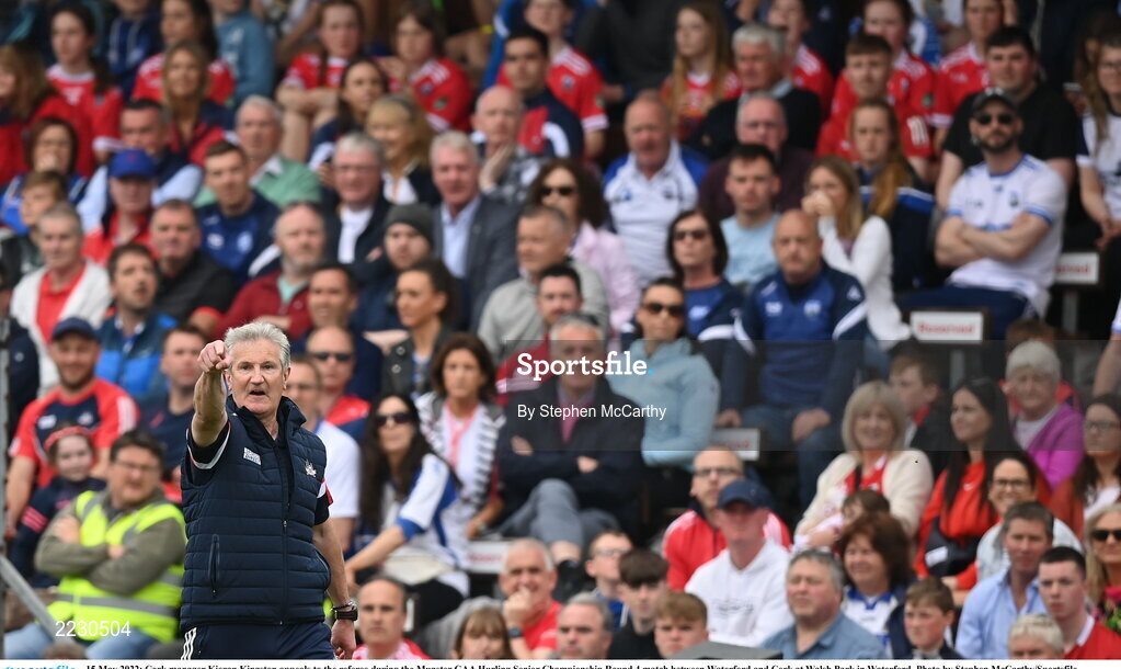 15 May 2022; Cork manager Kieran Kingston appeals to the referee during the Munster GAA Hurling Senior Championship Round 4 match between Waterford and Cork at Walsh Park in Waterford. Photo by Stephen McCarthy/Sportsfile