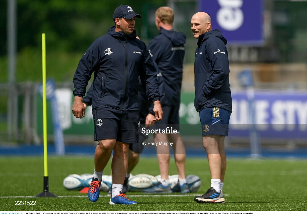 16 May 2022; Contact skills coach Denis Leamy and backs coach Felipe Contepomi during Leinster rugby squad training at Energia Park in Dublin. Photo by Harry Murphy/Sportsfile