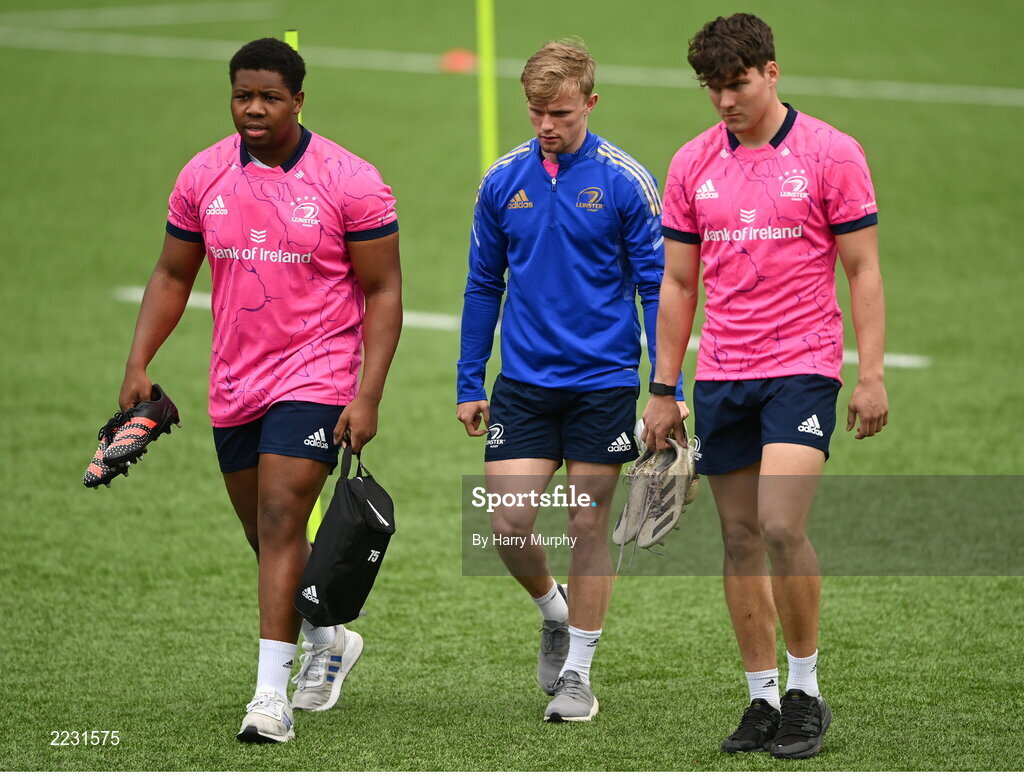 16 May 2022; Leinster players, from left, Temi Lasisi, Ben Murphy and Max O'Reilly during Leinster rugby squad training at Energia Park in Dublin. Photo by Harry Murphy/Sportsfile