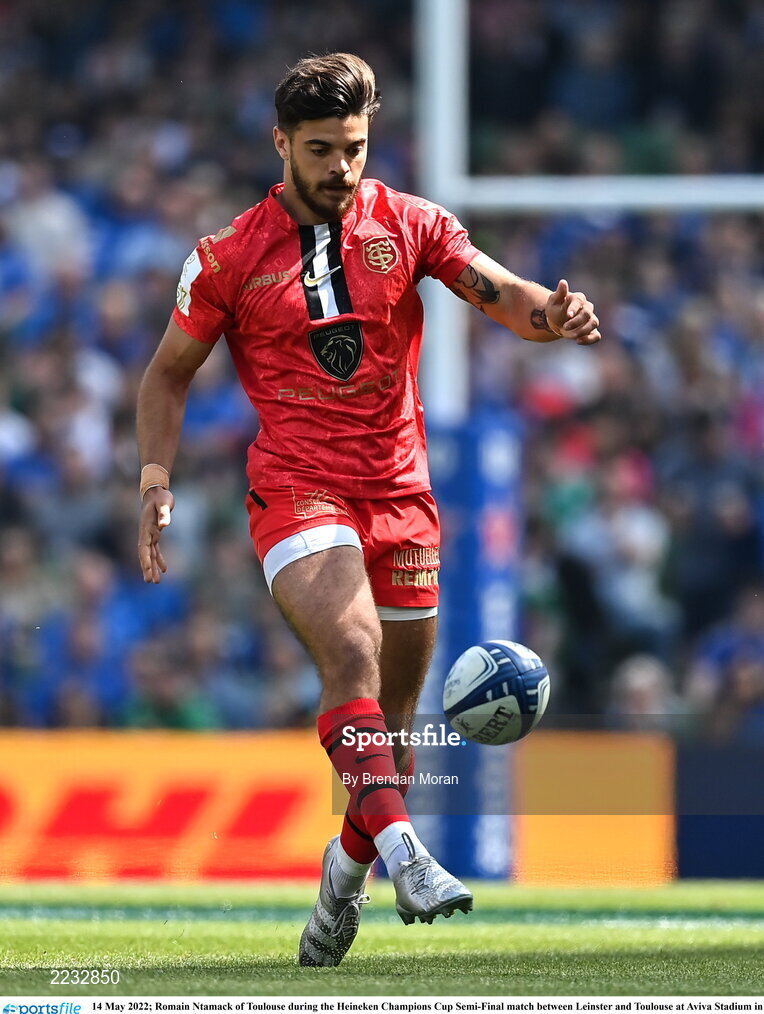 14 May 2022; Romain Ntamack of Toulouse during the Heineken Champions Cup Semi-Final match between Leinster and Toulouse at Aviva Stadium in Dublin. Photo by Brendan Moran/Sportsfile