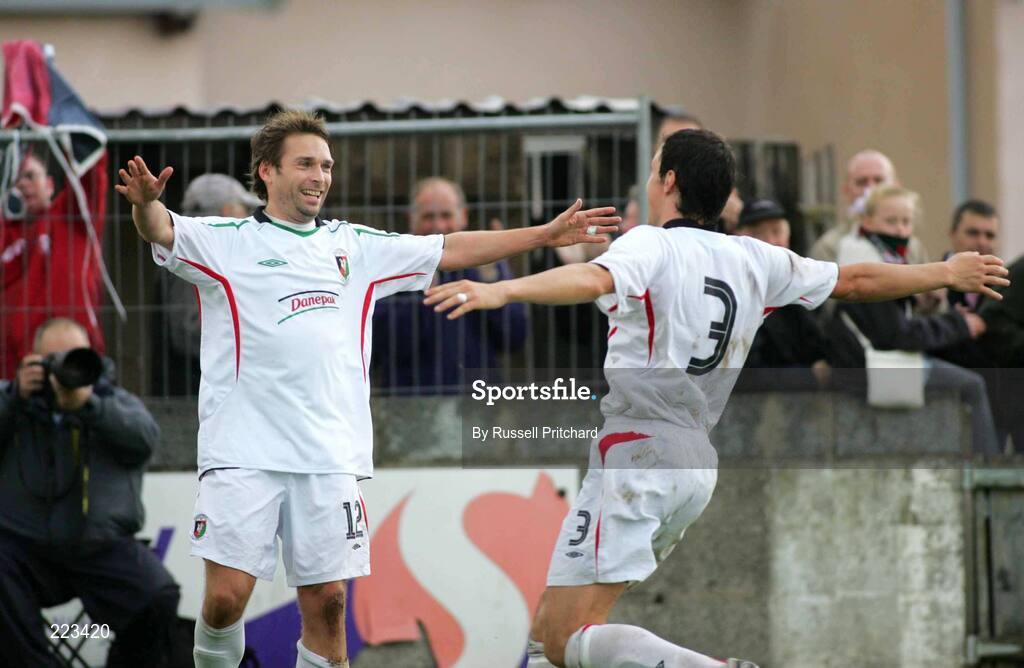 23 September 2006; Chris Morgan, Glentoran, is congratulated by team-mate Kyle Neill, 3, after his goal against Armagh City. Carnegie Premier League, Armagh City v Glentoran, Holm Park, Armagh, Co. Armagh. Picture credit: Russell Pritchard / SPORTSFILE