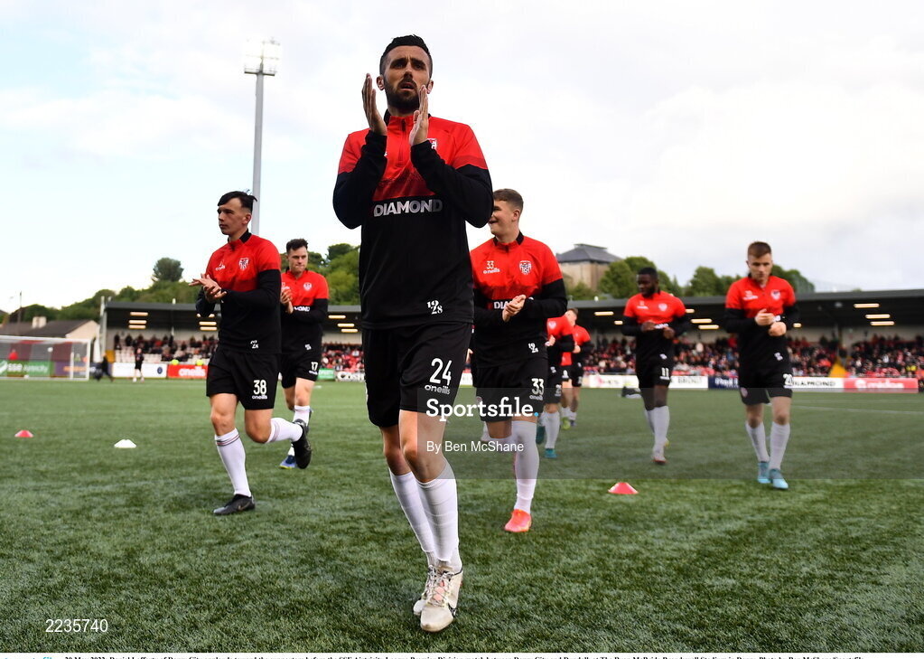 20 May 2022; Daniel Lafferty of Derry City applauds toward the supporters before the SSE Airtricity League Premier Division match between Derry City and Dundalk at The Ryan McBride Brandywell Stadium in Derry. Photo by Ben McShane/Sportsfile