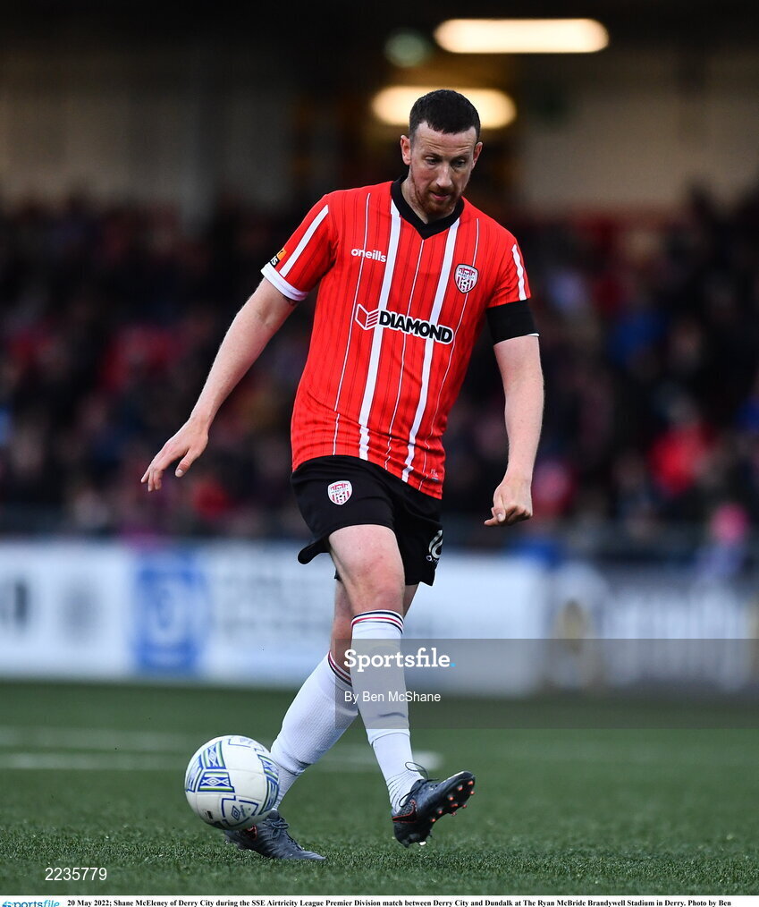 20 May 2022; Shane McEleney of Derry City during the SSE Airtricity League Premier Division match between Derry City and Dundalk at The Ryan McBride Brandywell Stadium in Derry. Photo by Ben McShane/Sportsfile
