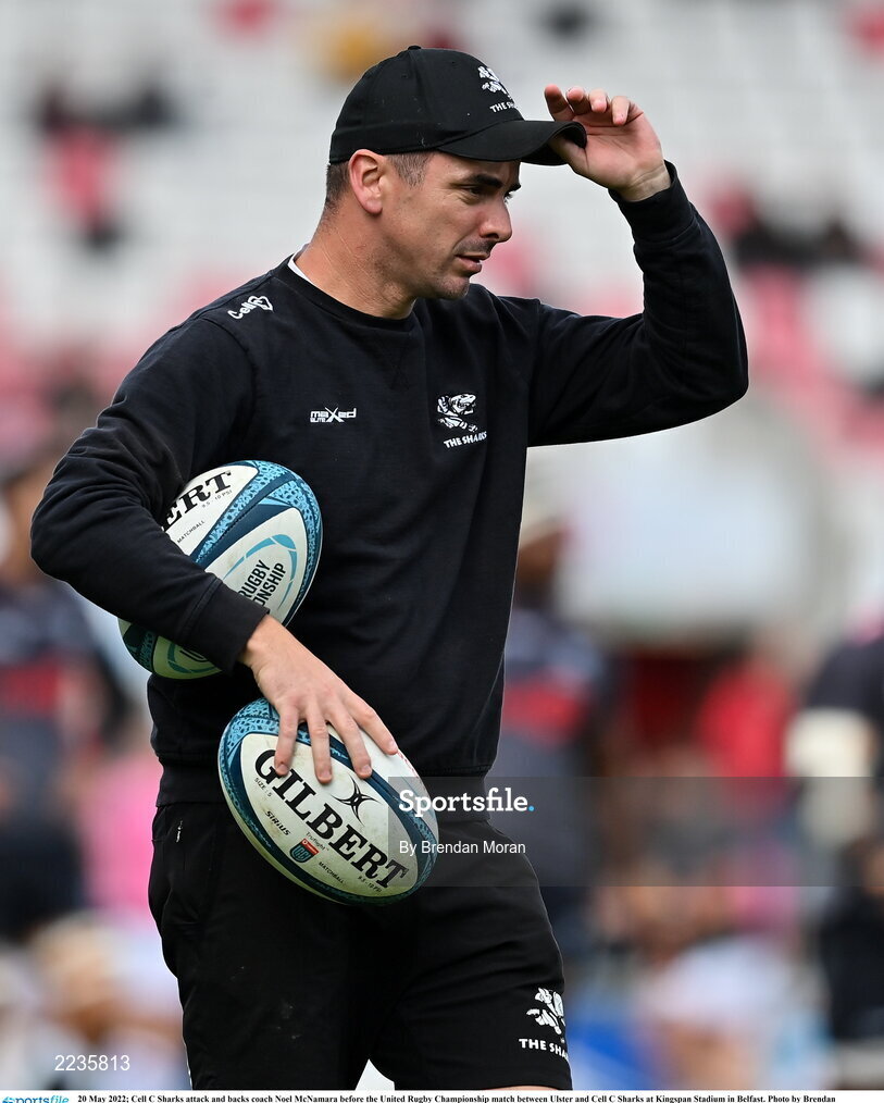 20 May 2022; Cell C Sharks attack and backs coach Noel McNamara before the United Rugby Championship match between Ulster and Cell C Sharks at Kingspan Stadium in Belfast. Photo by Brendan Moran/Sportsfile