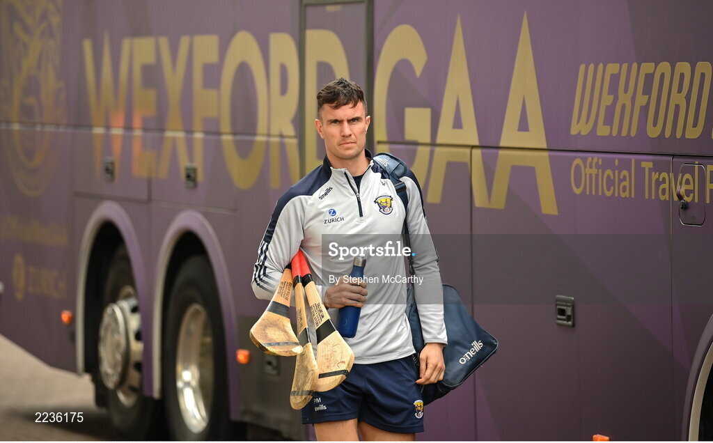 21 May 2022; Paul Morris of Wexford arrives for the Leinster GAA Hurling Senior Championship Round 5 match between Kilkenny and Wexford at UPMC Nowlan Park in Kilkenny. Photo by Stephen McCarthy/Sportsfile