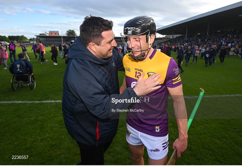 21 May 2022; Liam Óg McGovern of Wexford is congratulated by a supporter after the Leinster GAA Hurling Senior Championship Round 5 match between Kilkenny and Wexford at UPMC Nowlan Park in Kilkenny. Photo by Stephen McCarthy/Sportsfile