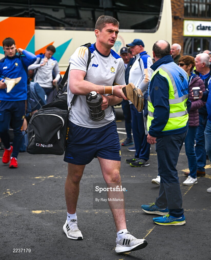 22 May 2022; Clare captain Conor Cleary arrives for the Munster GAA Hurling Senior Championship Round 5 match between Clare and Waterford at Cusack Park in Ennis, Clare. Photo by Ray McManus/Sportsfile
