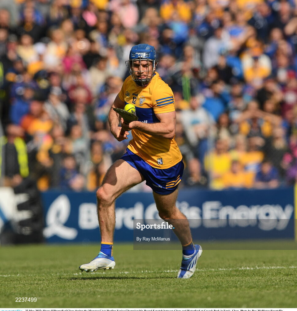 22 May 2022; Shane O'Donnell of Clare during the Munster GAA Hurling Senior Championship Round 5 match between Clare and Waterford at Cusack Park in Ennis, Clare. Photo by Ray McManus/Sportsfile