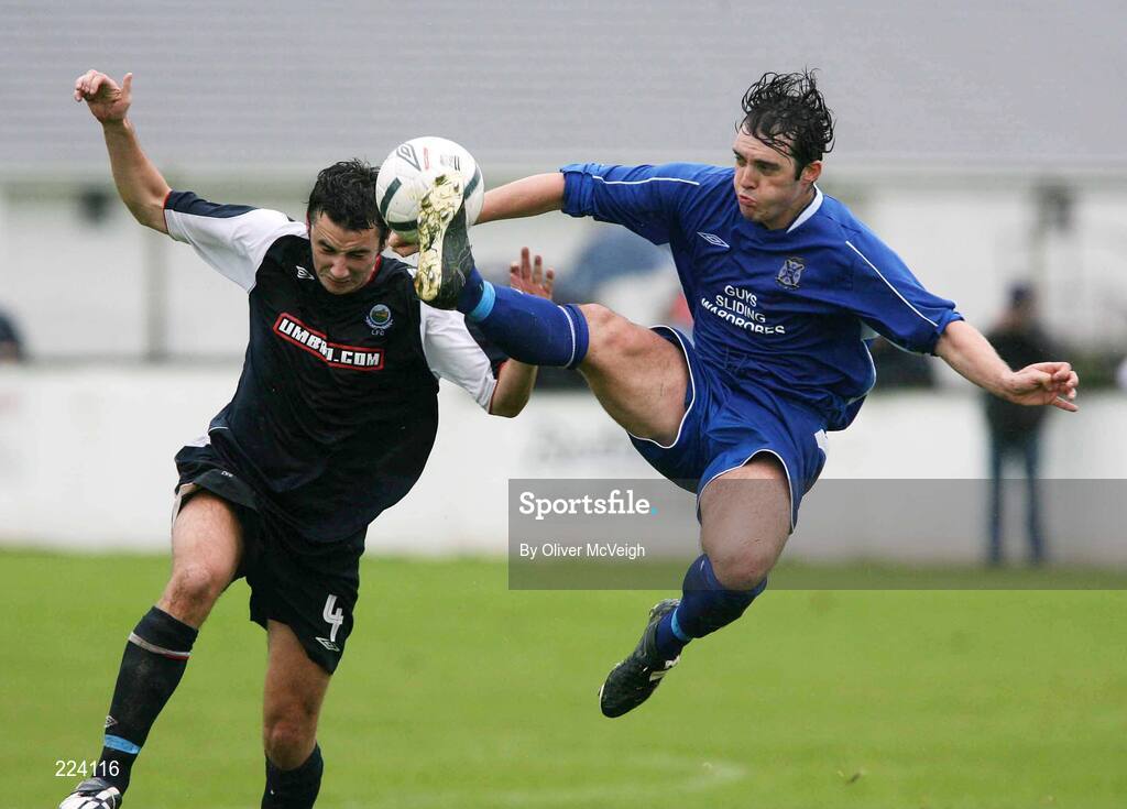 30 September 2006; Michael Hegarty, Limavady United, in action against Michael Gault, Linfield. Carnegie Premier League, Limavady United v Linfield, Showgrounds, Limavady, Co Derry. Picture credit: Oliver McVeigh / SPORTSFILE