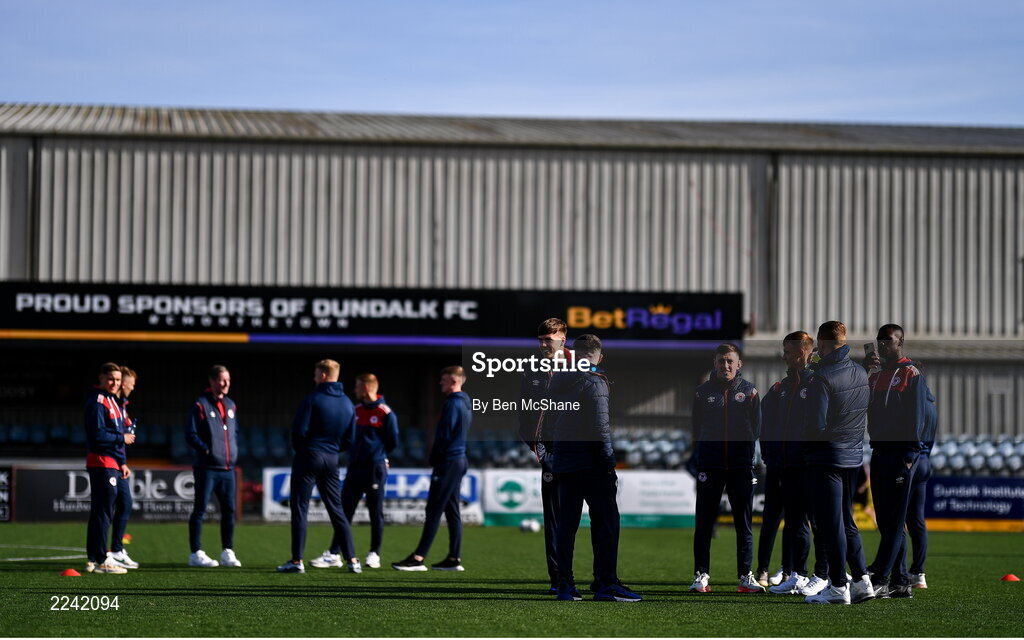 27 May 2022; St Patrick's Athletic players walk the pitch before the SSE Airtricity League Premier Division match between Dundalk and St Patrick's Athletic at Oriel Park in Dundalk, Louth. Photo by Ben McShane/Sportsfile