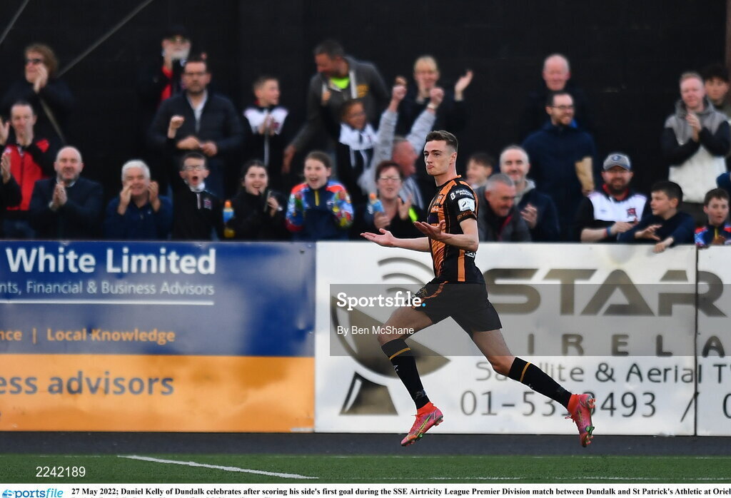 27 May 2022; Daniel Kelly of Dundalk celebrates after scoring his side's first goal during the SSE Airtricity League Premier Division match between Dundalk and St Patrick's Athletic at Oriel Park in Dundalk, Louth. Photo by Ben McShane/Sportsfile