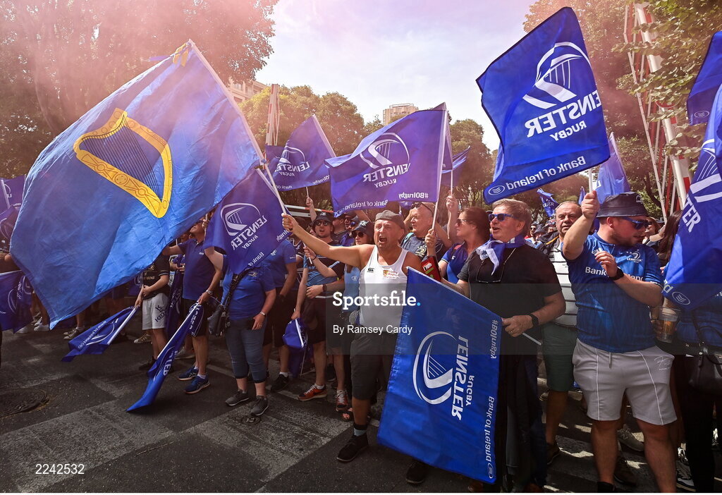28 May 2022; Leinster supporters before the Heineken Champions Cup Final match between Leinster and La Rochelle at Stade Velodrome in Marseille, France. Photo by Ramsey Cardy/Sportsfile
