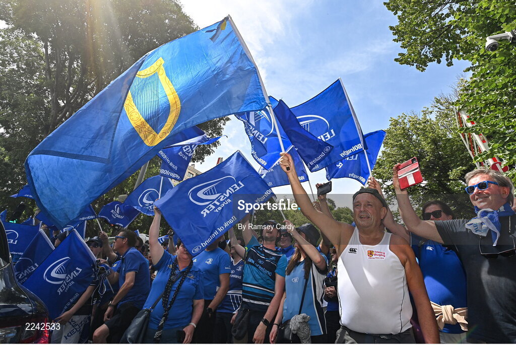 28 May 2022; Leinster supporters before the Heineken Champions Cup Final match between Leinster and La Rochelle at Stade Velodrome in Marseille, France. Photo by Ramsey Cardy/Sportsfile
