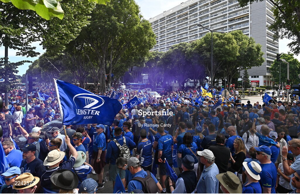 28 May 2022; Supporters gather outside the ground before the Heineken Champions Cup Final match between Leinster and La Rochelle at Stade Velodrome in Marseille, France. Photo by Ramsey Cardy/Sportsfile