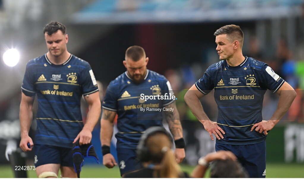 28 May 2022; Leinster captain Jonathan Sexton reacts after his side's defeat in the Heineken Champions Cup Final match between Leinster and La Rochelle at Stade Velodrome in Marseille, France. Photo by Ramsey Cardy/Sportsfile