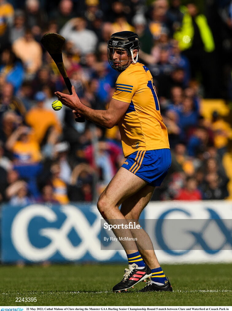 22 May 2022; Cathal Malone of Clare during the Munster GAA Hurling Senior Championship Round 5 match between Clare and Waterford at Cusack Park in Ennis, Clare. Photo by Ray McManus/Sportsfile