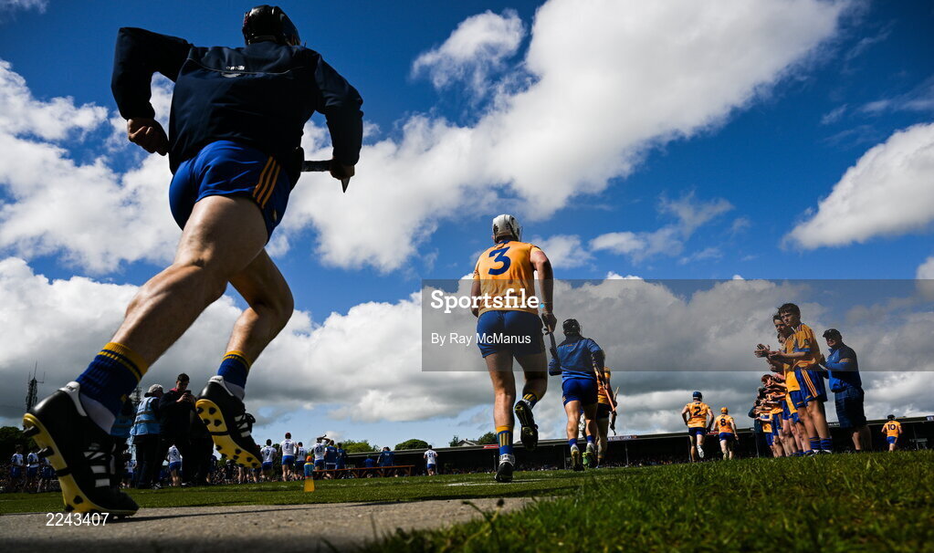 22 May 2022; Clare players run out for the Munster GAA Hurling Senior Championship Round 5 match between Clare and Waterford at Cusack Park in Ennis, Clare. Photo by Ray McManus/Sportsfile
