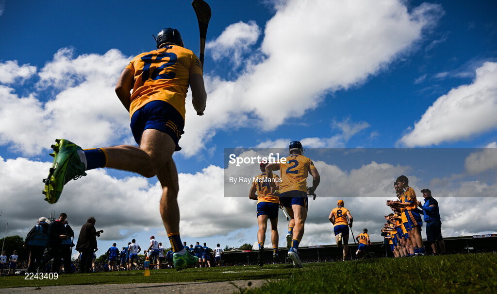 22 May 2022; Clare players run out for the Munster GAA Hurling Senior Championship Round 5 match between Clare and Waterford at Cusack Park in Ennis, Clare. Photo by Ray McManus/Sportsfile