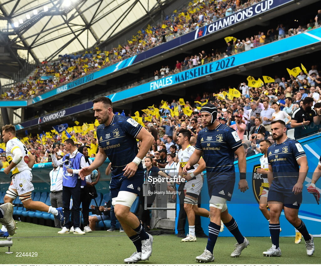 28 May 2022; Leinster players, from left, Jack Conan, Caelan Doris and Rónan Kelleher before the Heineken Champions Cup Final match between Leinster and La Rochelle at Stade Velodrome in Marseille, France. Photo by Harry Murphy/Sportsfile