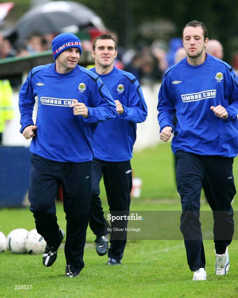 30 September 2006; Glen Ferguson, Tim McCann, and Tim Mouncey, Linfield subs. Carnegie Premier League, Limavady United v Linfield, Showgrounds, Limavady, Co Derry. Picture credit: Oliver McVeigh / SPORTSFILE