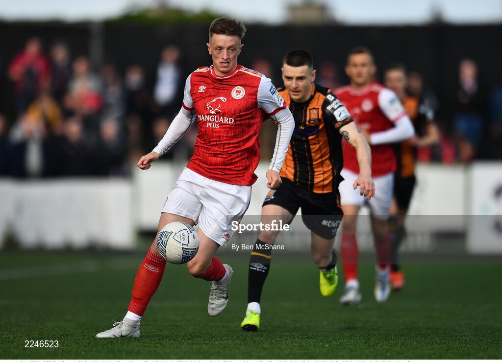 27 May 2022; Chris Forrester of St Patrick's Athletic and Darragh Leahy of Dundalk during the SSE Airtricity League Premier Division match between Dundalk and St Patrick's Athletic at Oriel Park in Dundalk, Louth. Photo by Ben McShane/Sportsfile