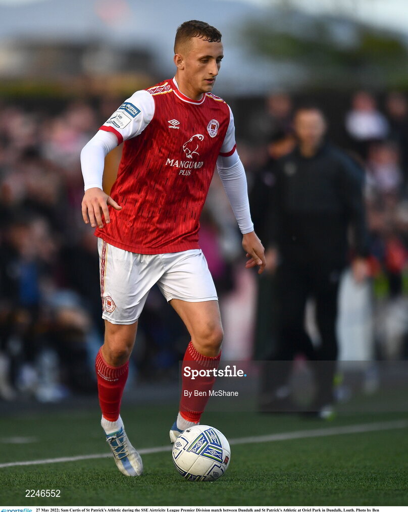 27 May 2022; Sam Curtis of St Patrick's Athletic during the SSE Airtricity League Premier Division match between Dundalk and St Patrick's Athletic at Oriel Park in Dundalk, Louth. Photo by Ben McShane/Sportsfile