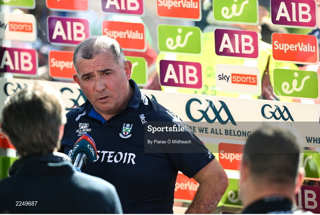 4 June 2022; Monaghan manager Séamus McEnaney is interviewed after the GAA Football All-Ireland Senior Championship Round 1 match between Mayo and Monaghan at Hastings Insurance MacHale Park in Castlebar, Mayo. Photo by Piaras Ó Mídheach/Sportsfile