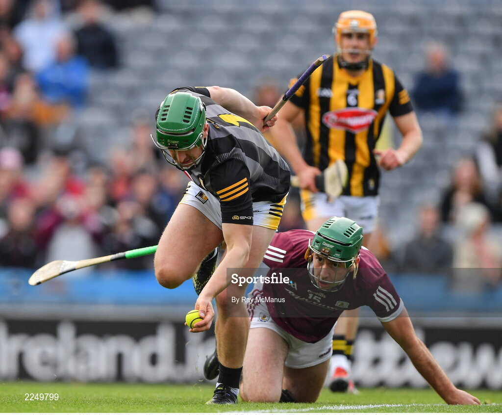 4 June 2022; Kilkenny goalkeeper Eoin Murphy is tackled by Brian Concannon of Galway during the Leinster GAA Hurling Senior Championship Final match between Galway and Kilkenny at Croke Park in Dublin. Photo by Ray McManus/Sportsfile