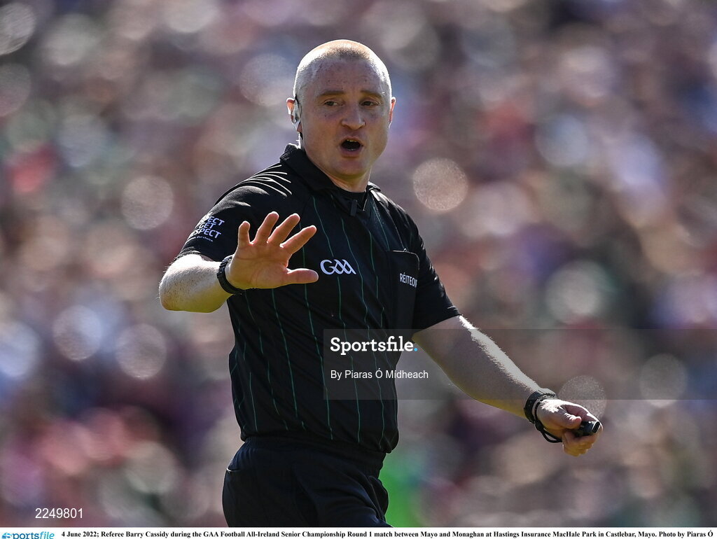 4 June 2022; Referee Barry Cassidy during the GAA Football All-Ireland Senior Championship Round 1 match between Mayo and Monaghan at Hastings Insurance MacHale Park in Castlebar, Mayo. Photo by Piaras Ó Mídheach/Sportsfile