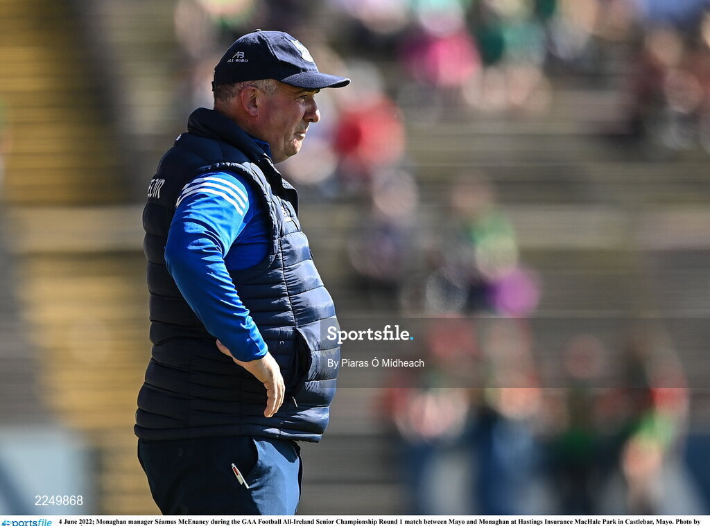 4 June 2022; Monaghan manager Séamus McEnaney during the GAA Football All-Ireland Senior Championship Round 1 match between Mayo and Monaghan at Hastings Insurance MacHale Park in Castlebar, Mayo. Photo by Piaras Ó Mídheach/Sportsfile