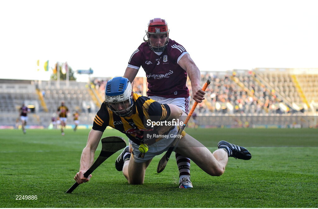 4 June 2022; Huw Lawlor of Kilkenny is fouled by Conor Whelan of Galway during the Leinster GAA Hurling Senior Championship Final match between Galway and Kilkenny at Croke Park in Dublin. Photo by Ramsey Cardy/Sportsfile
