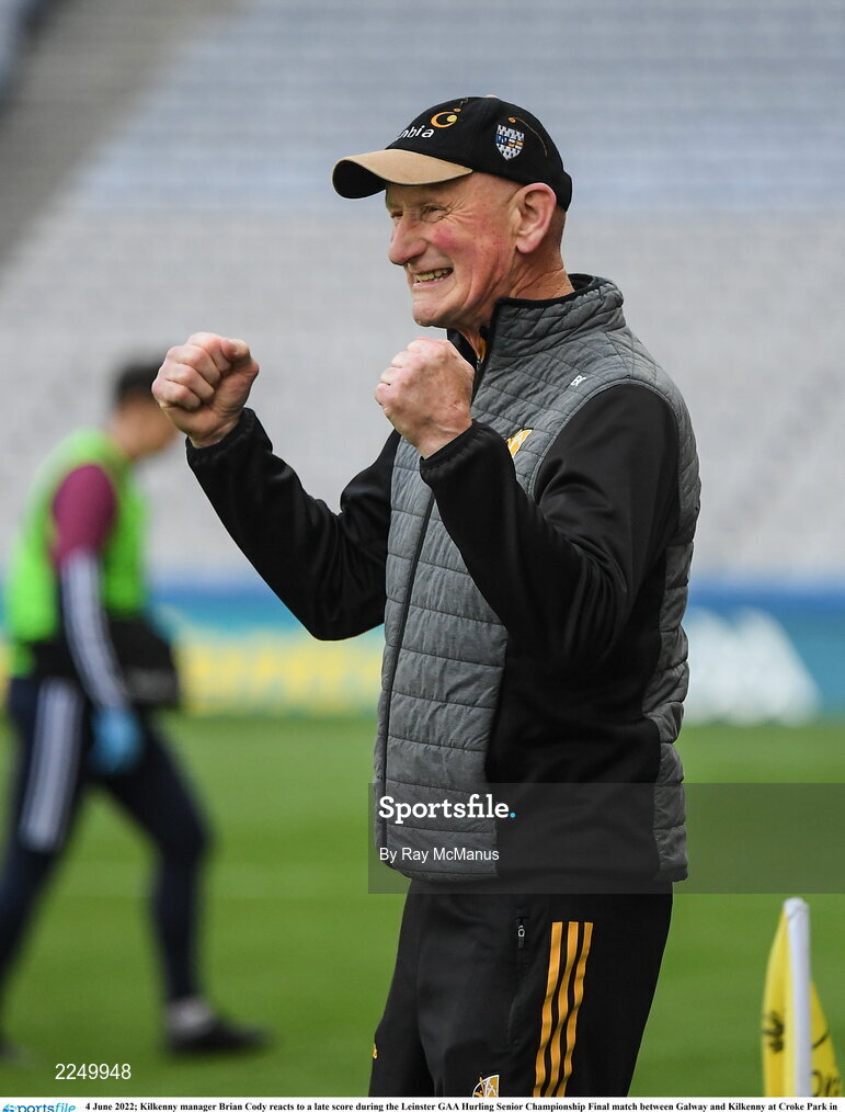 4 June 2022; Kilkenny manager Brian Cody reacts to a late score during the Leinster GAA Hurling Senior Championship Final match between Galway and Kilkenny at Croke Park in Dublin. Photo by Ray McManus/Sportsfile