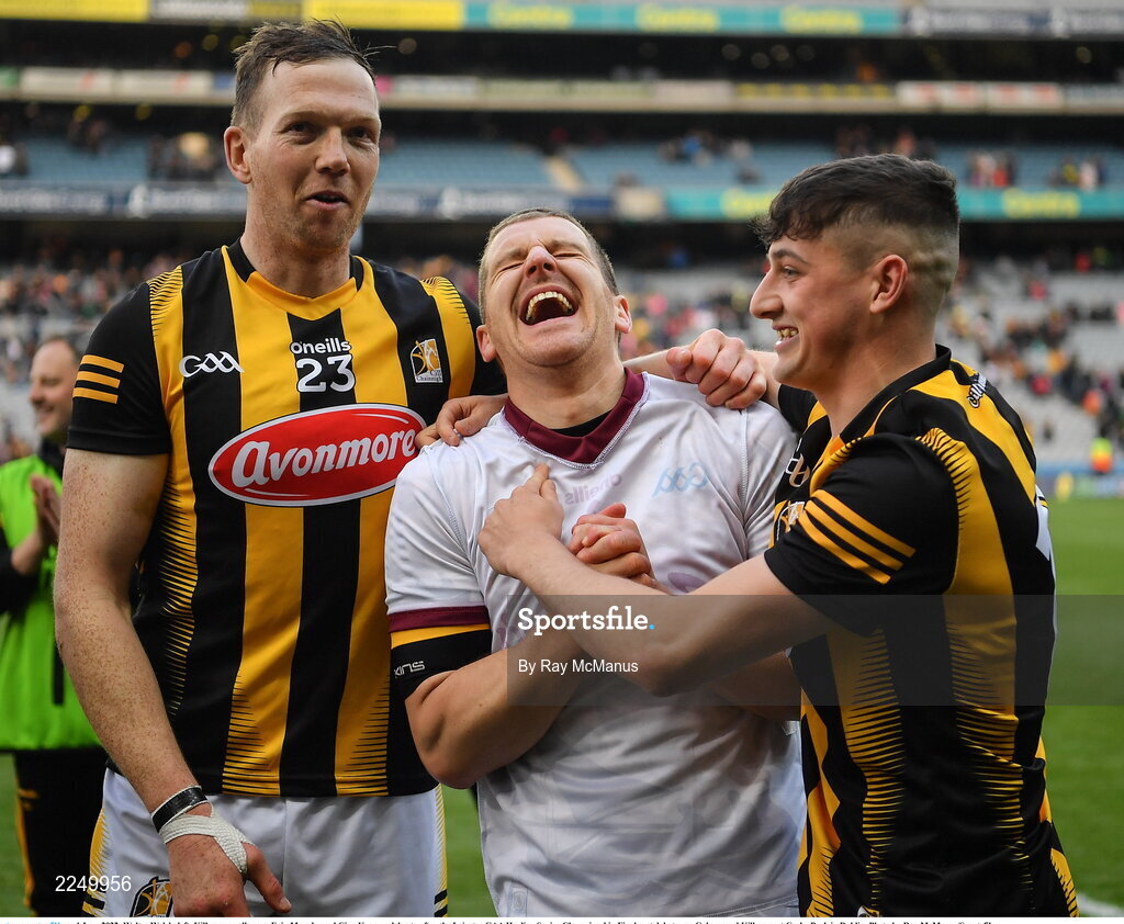4 June 2022; Walter Walsh, left, Kilkenny goalkeeper Eoin Murphy and Cian Kenny celebrate after the Leinster GAA Hurling Senior Championship Final match between Galway and Kilkenny at Croke Park in Dublin. Photo by Ray McManus/Sportsfile