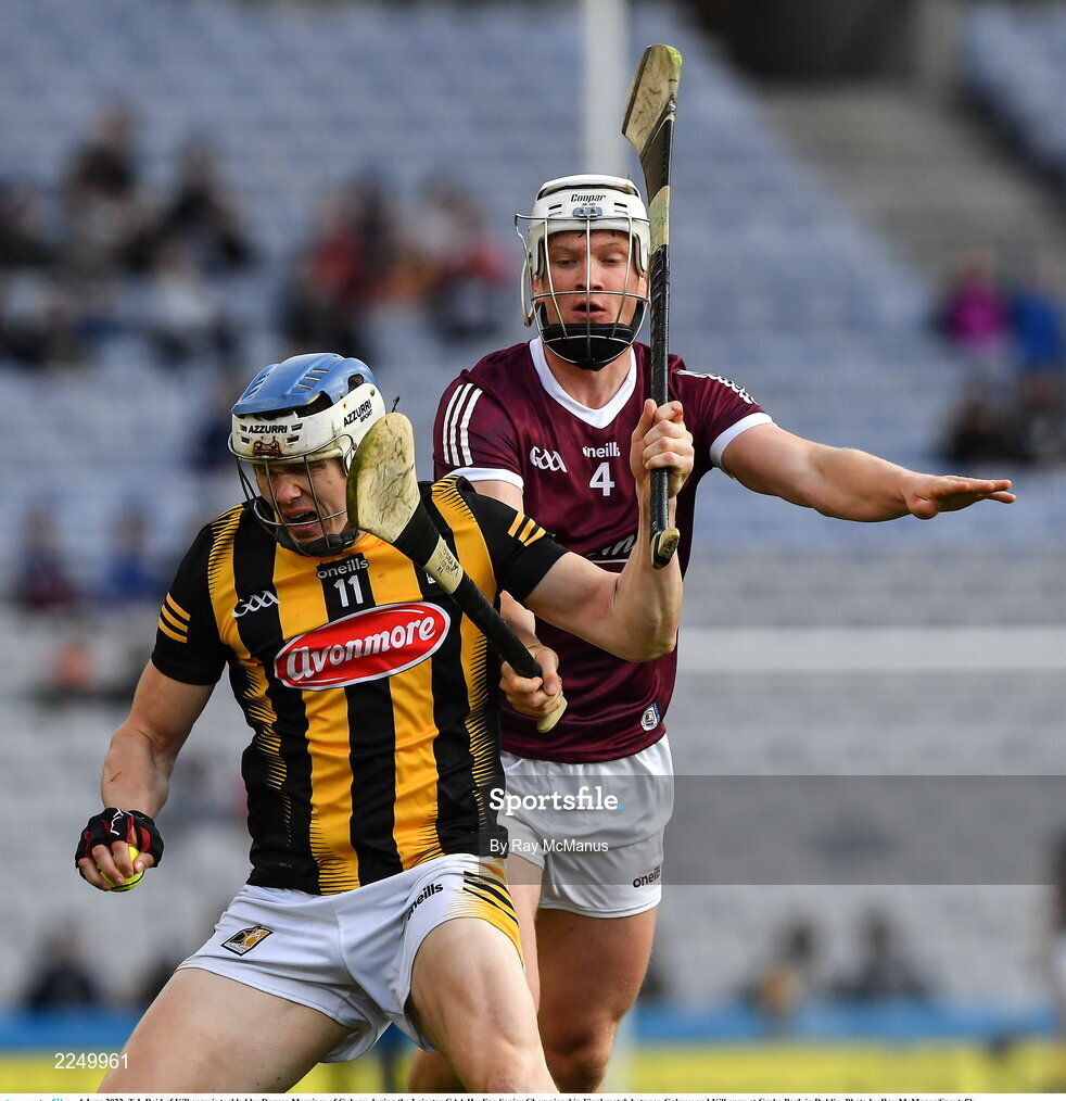4 June 2022; T.J. Reid of Kilkenny is tackled by Darren Morrisey of Galway during the Leinster GAA Hurling Senior Championship Final match between Galway and Kilkenny at Croke Park in Dublin. Photo by Ray McManus/Sportsfile