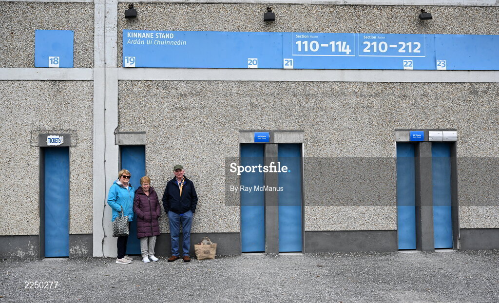 5 June 2022; Clare supporters Mary Gallagher, left, with Bríd and Johnny McMahon, from Kilkishen, await the opening of the stiles for the Munster GAA Hurling Senior Championship Final match between Limerick and Clare at Semple Stadium in Thurles, Tipperary. Photo by Ray McManus/Sportsfile