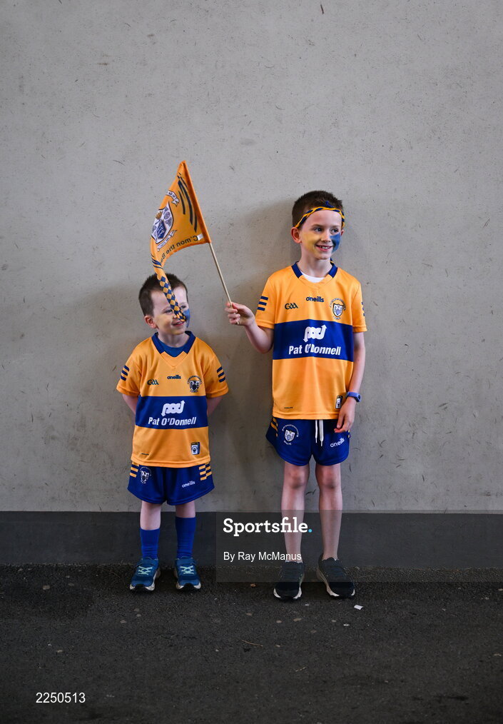 5 June 2022; Rowan, four years, and his brother Harrison Dwane, 7, from Lissycasey in Clare, before the Munster GAA Hurling Senior Championship Final match between Limerick and Clare at Semple Stadium in Thurles, Tipperary. Photo by Ray McManus/Sportsfile