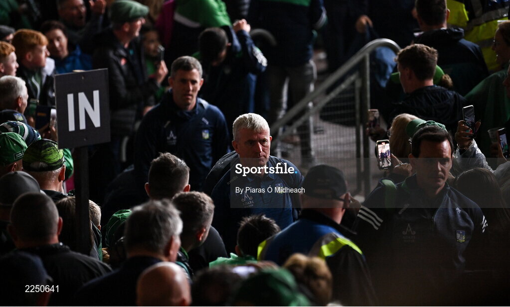 5 June 2022; Limerick manager John Kiely, centre, arrives with his selectors Paul Kinnerk, right, and Donal O'Grady before the Munster GAA Hurling Senior Championship Final match between Limerick and Clare at FBD Semple Stadium in Thurles, Tipperary. Photo by Piaras Ó Mídheach/Sportsfile