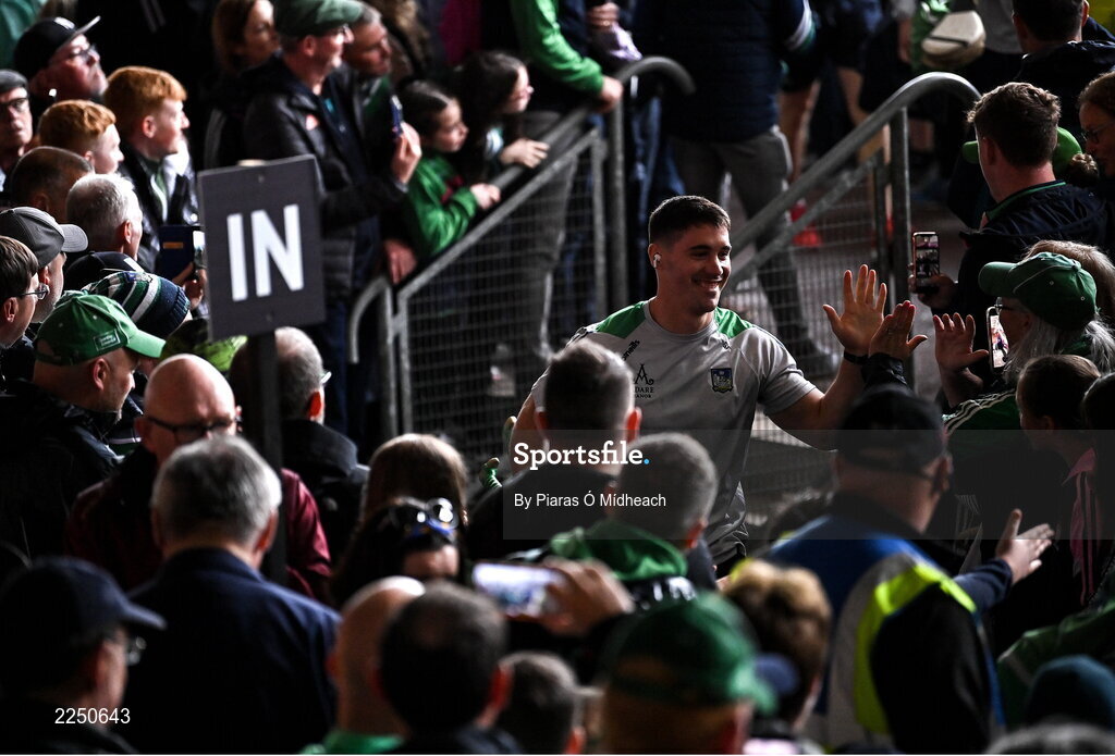 5 June 2022; Seán Finn of Limerick arrives for the Munster GAA Hurling Senior Championship Final match between Limerick and Clare at FBD Semple Stadium in Thurles, Tipperary. Photo by Piaras Ó Mídheach/Sportsfile