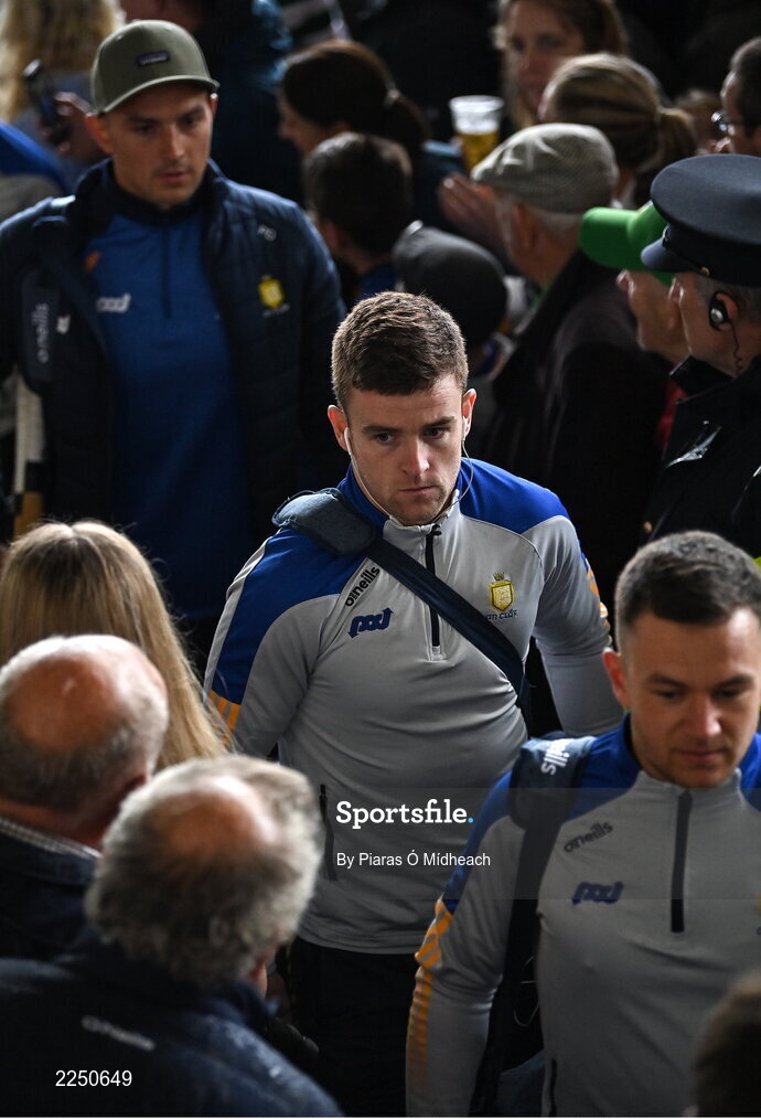 5 June 2022; Tony Kelly of Clare, centre, arrives for the Munster GAA Hurling Senior Championship Final match between Limerick and Clare at FBD Semple Stadium in Thurles, Tipperary. Photo by Piaras Ó Mídheach/Sportsfile
