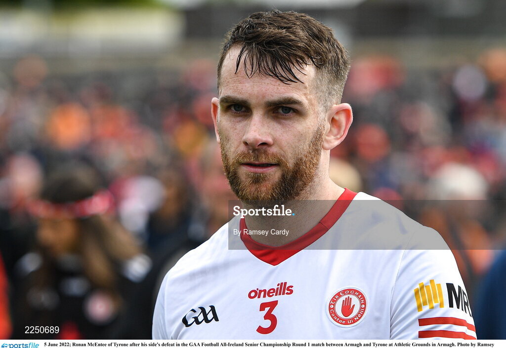 5 June 2022; Ronan McEntee of Tyrone after his side's defeat in the GAA Football All-Ireland Senior Championship Round 1 match between Armagh and Tyrone at Athletic Grounds in Armagh. Photo by Ramsey Cardy/Sportsfile