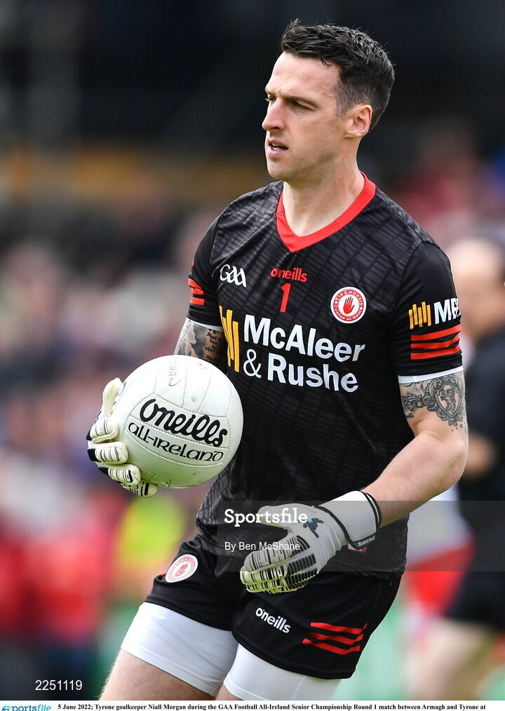 5 June 2022; Tyrone goalkeeper Niall Morgan during the GAA Football All-Ireland Senior Championship Round 1 match between Armagh and Tyrone at Athletic Grounds in Armagh. Photo by Ben McShane/Sportsfile