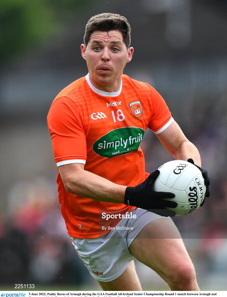 5 June 2022; Paddy Burns of Armagh during the GAA Football All-Ireland Senior Championship Round 1 match between Armagh and Tyrone at Athletic Grounds in Armagh. Photo by Ben McShane/Sportsfile