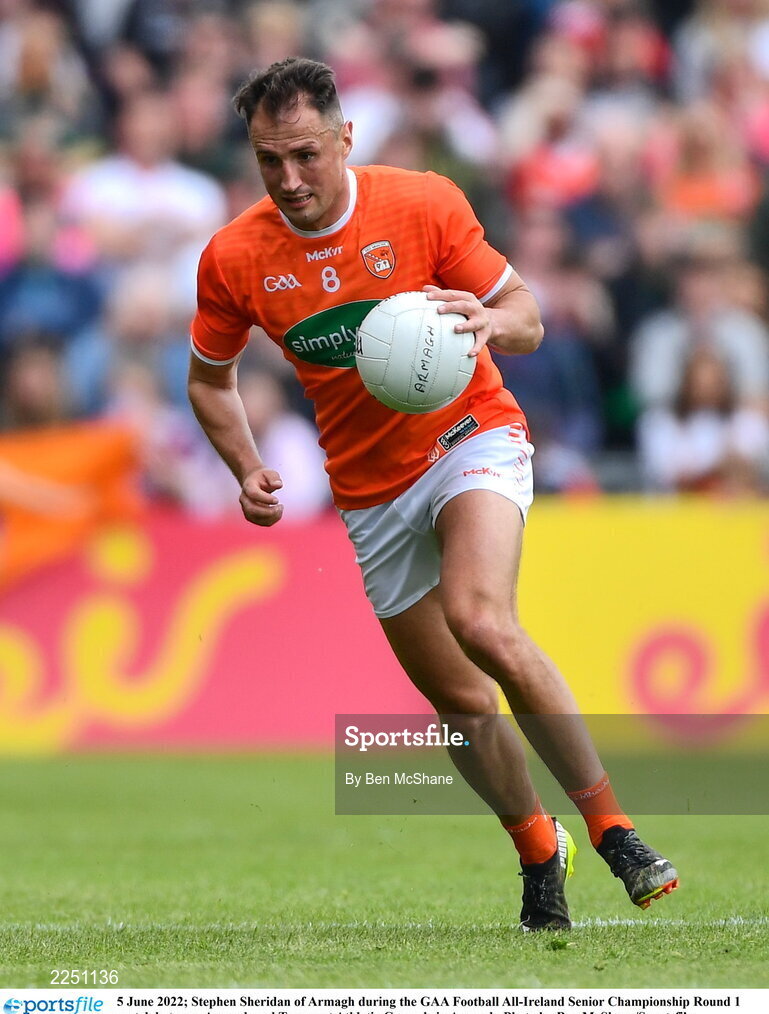 5 June 2022; Stephen Sheridan of Armagh during the GAA Football All-Ireland Senior Championship Round 1 match between Armagh and Tyrone at Athletic Grounds in Armagh. Photo by Ben McShane/Sportsfile