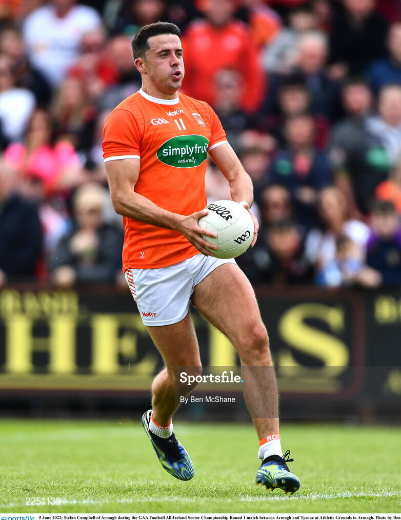 5 June 2022; Stefan Campbell of Armagh during the GAA Football All-Ireland Senior Championship Round 1 match between Armagh and Tyrone at Athletic Grounds in Armagh. Photo by Ben McShane/Sportsfile